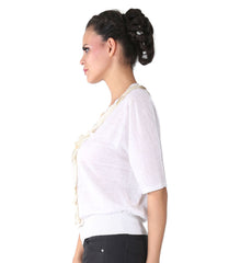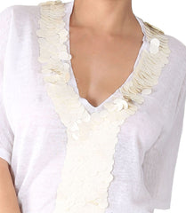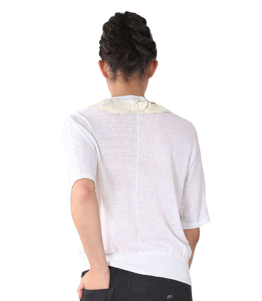 Farhi White Top With Big Cream Sequence