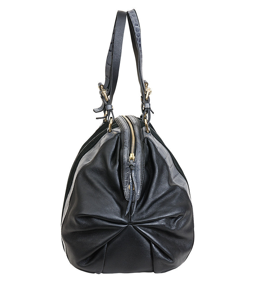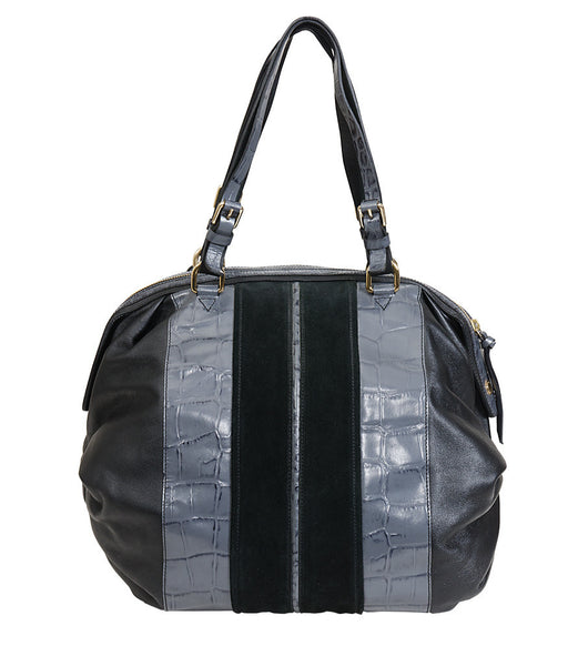 Francesco Biasia bag combination of smooth leather , suede leather and croco print leather.