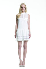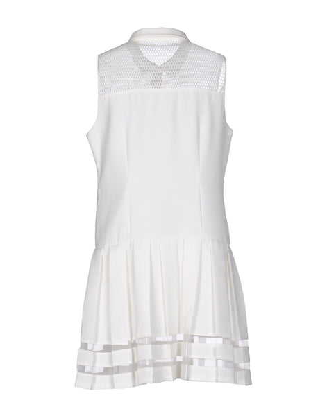 Lightly textured woven fabric Bonded mesh contrast Point collar Press stud placket through front Press stud flap pockets Side zip fastening Sheer silk chiffon hem stripes Regular fit - true to...