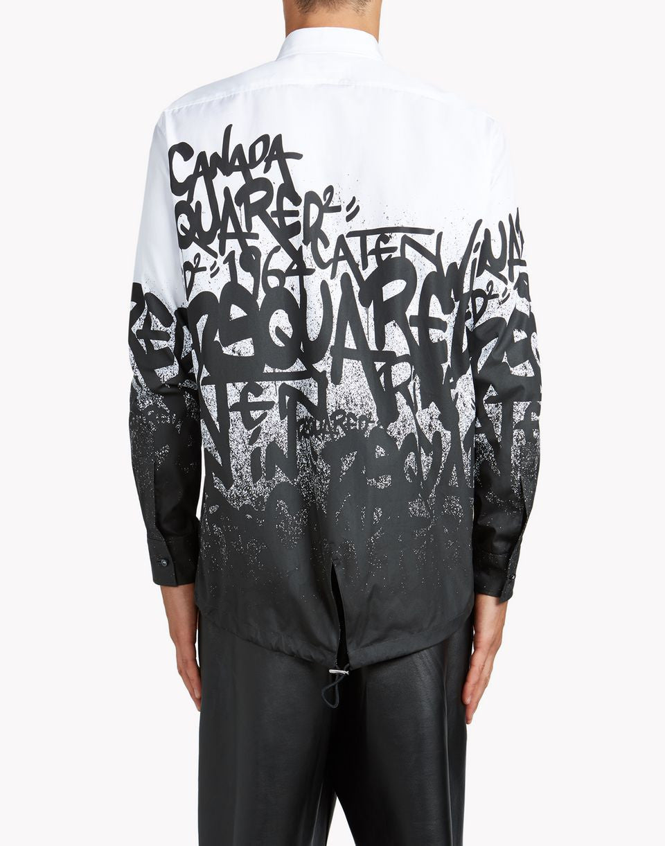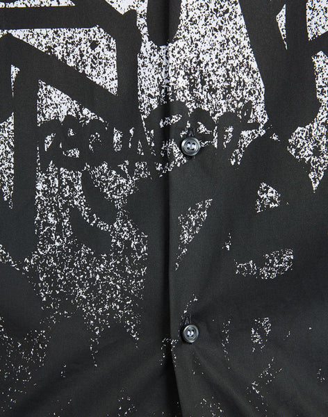 Plain weave Shirt Classic collared neckline Button closure with placket. Black and white graffiti print Full sleeved with cuff and button Slit opening on the back side Slit closure with a...