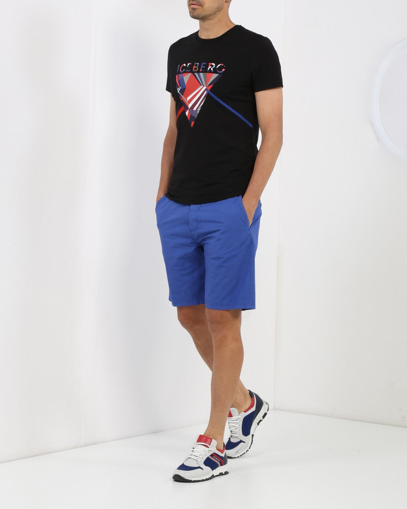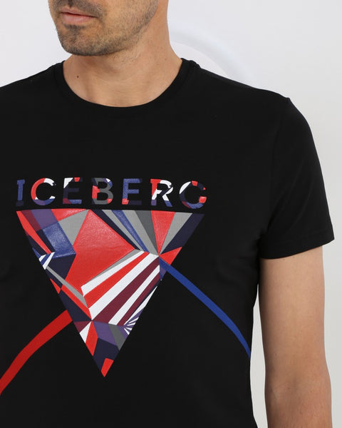 Crew-neck cotton T-shirt with "Iceberg" graphic geometric print on the front
