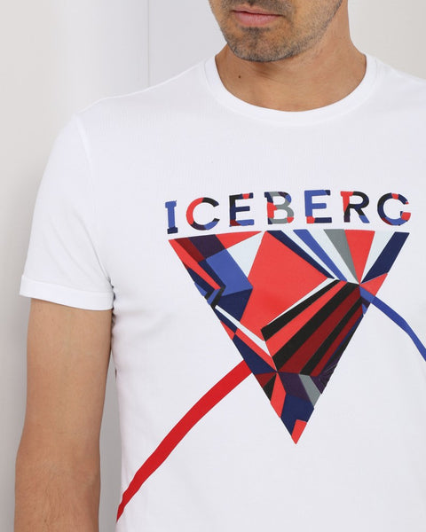 Crew-neck cotton T-shirt with "Iceberg" graphic geometric print on the front