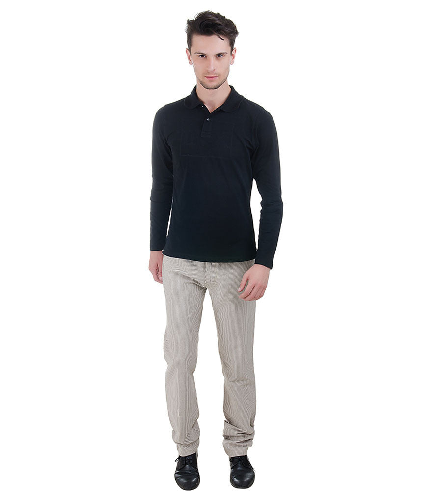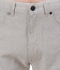 Lagerfeld's grey stripe cotton chinos The classic five pocket Chino’s are fastened with a button closure Tonal stitching throughout A branded black leather patch at the back pocket