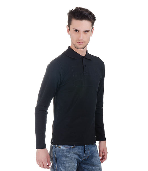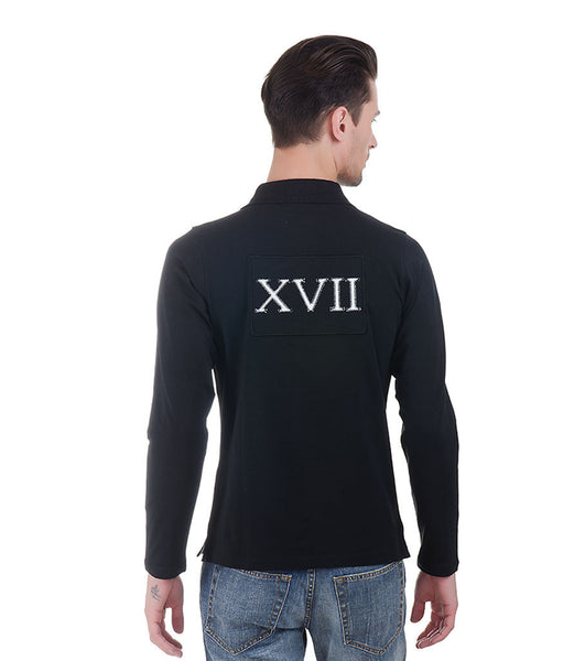 Black T-shirt from Lagerfeld T-shirt Printed at the front and back Full sleeves Two-button front placket
