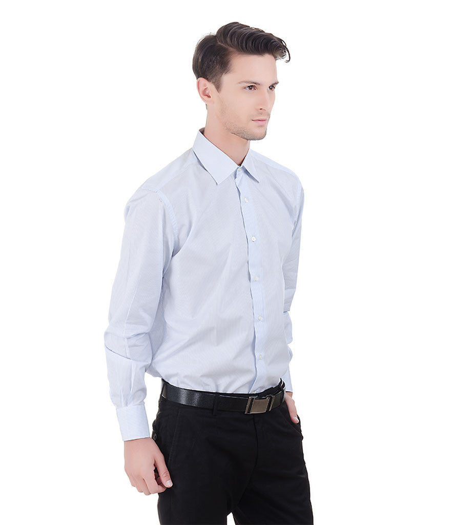 Striped Lt.Blue Nina Ricci shirt. Crafted from light weight cotton. The men’s shirt is fastened with a button placket. Detailed with a classic pointed collar. Buttoned cuffs. Full sleeves. Western shoulder...